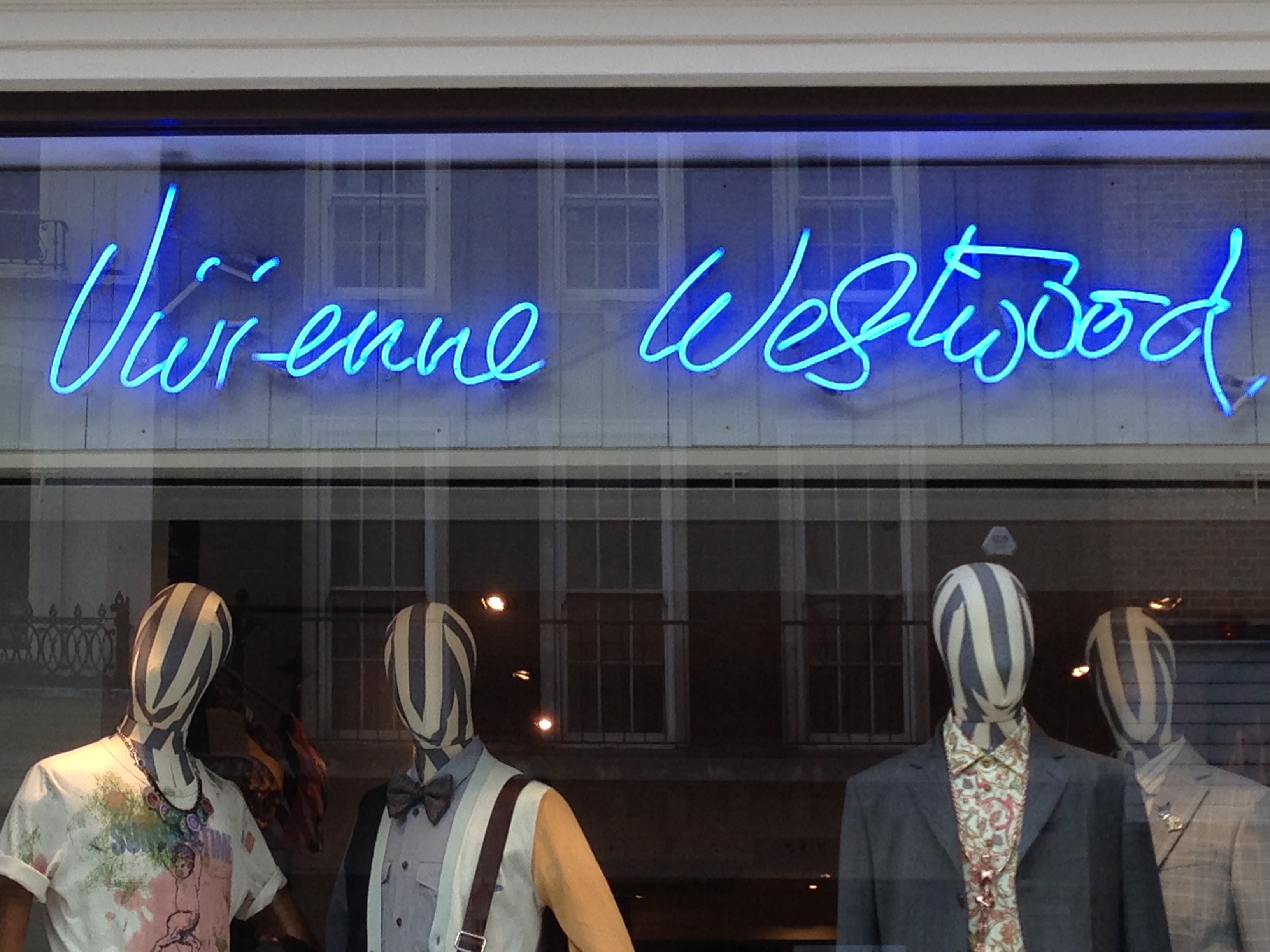 Blue and Pink Neon Sign For Shopfront Blue neon sign installed in the shopfront window of Vivienne Westwood, a high end London fashion designer. Shop SignsIlluminated LED and neon signsWindow Graphics Share this sign agg_neon agg_shop exposed neon