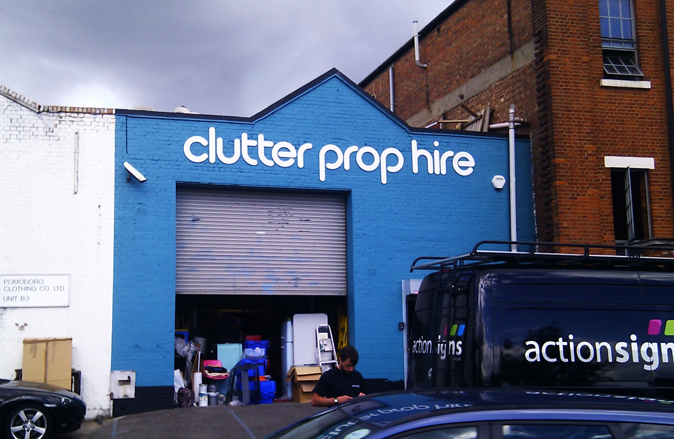 Cut out what acrylic letters installed on brick wall of large garage/storing unit in London.