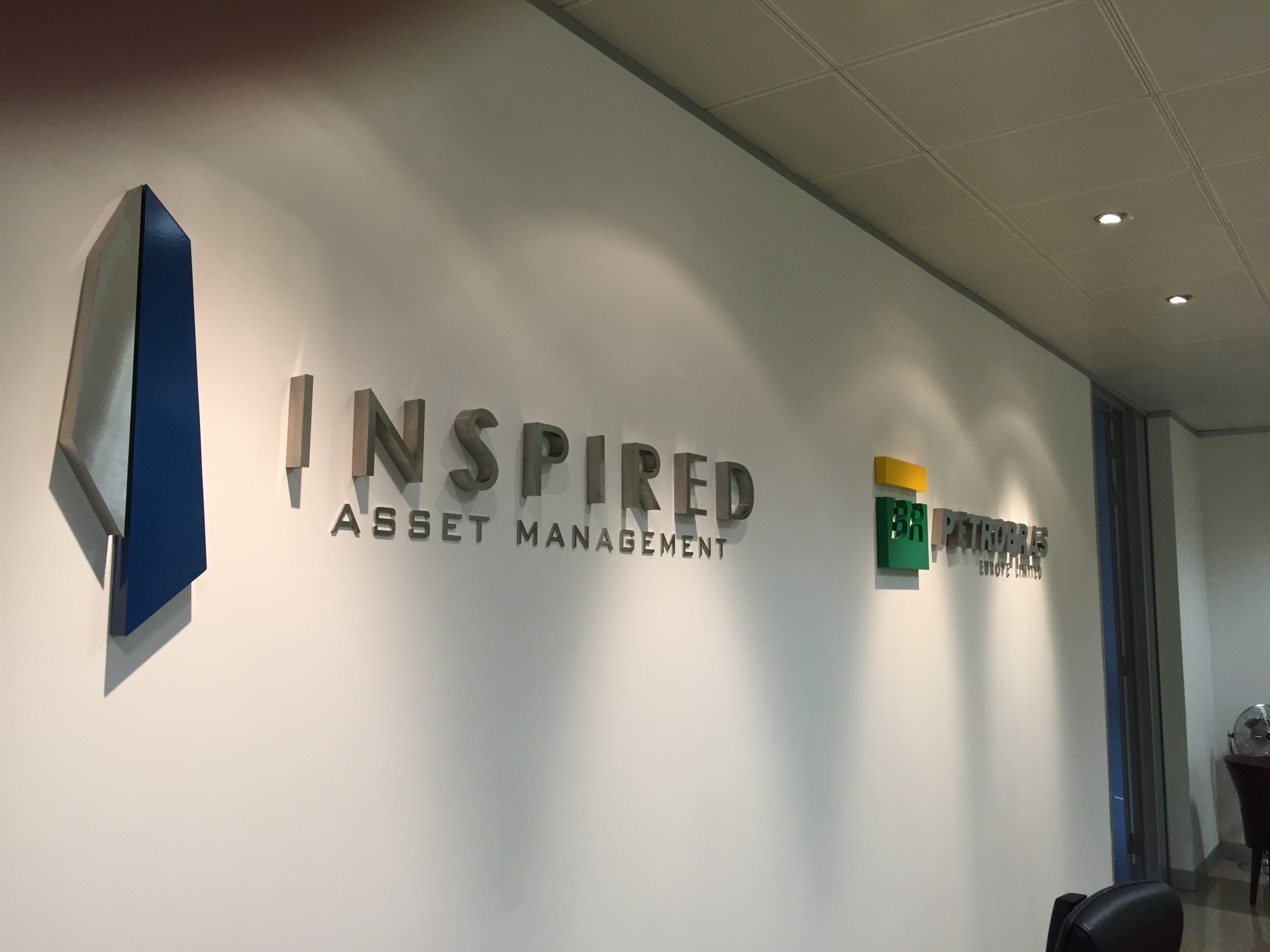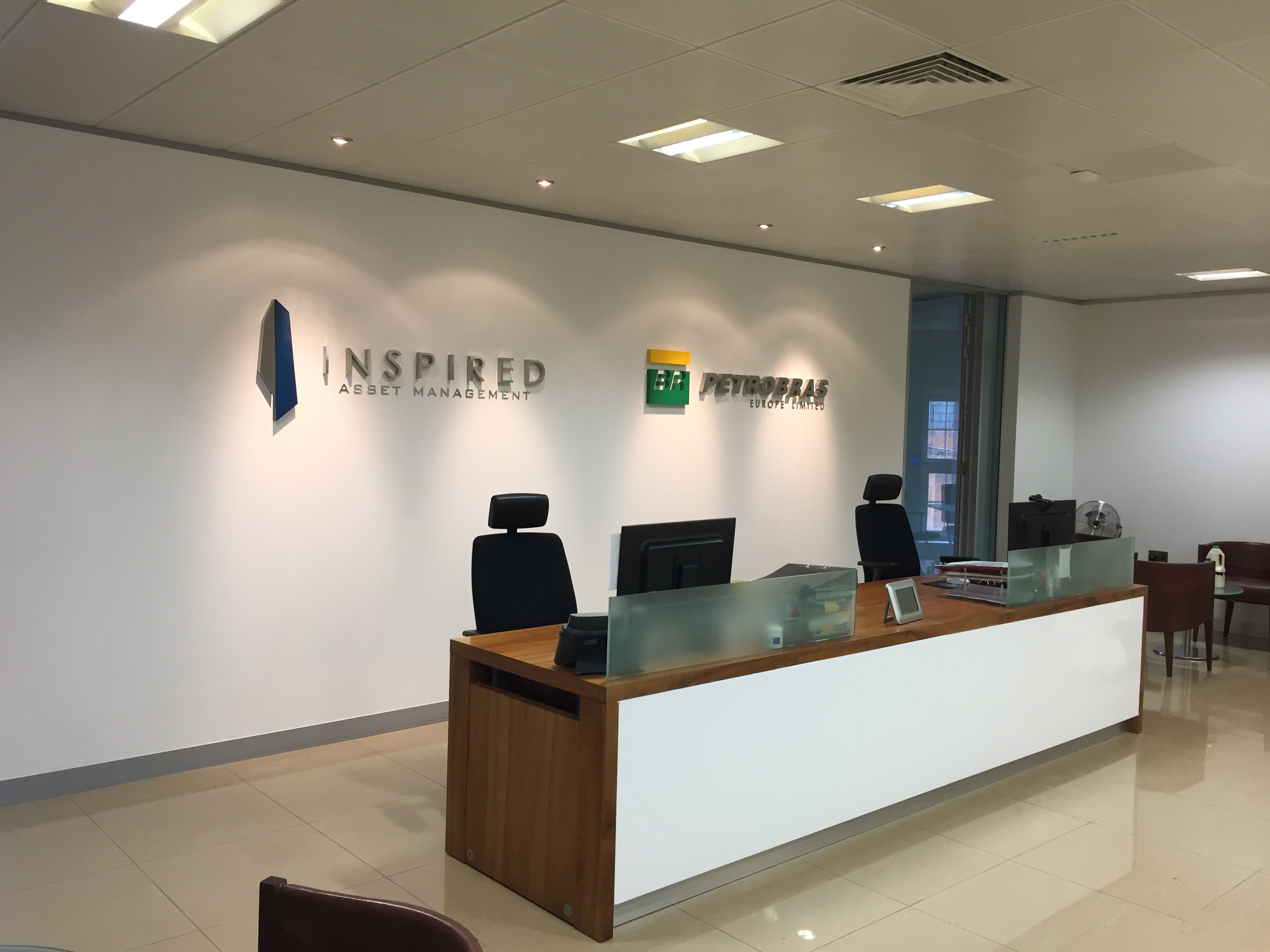 Energy Firm and Asset Manager Logo Sign Fabricated soldered metal letters and 3D metal logo signs at company reception desk in City of London. Corporate SignsReception signs3D Share this sign