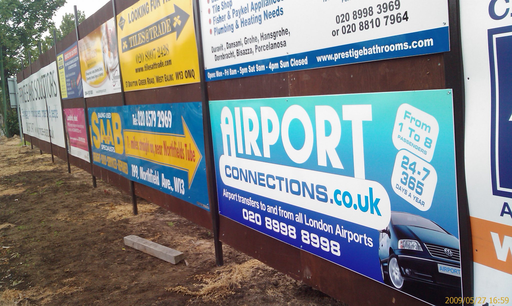 General Advertising Hoarding For Minicabs Advertising hoarding and temporary signage for minicab firm. Transport Signs Share this sign