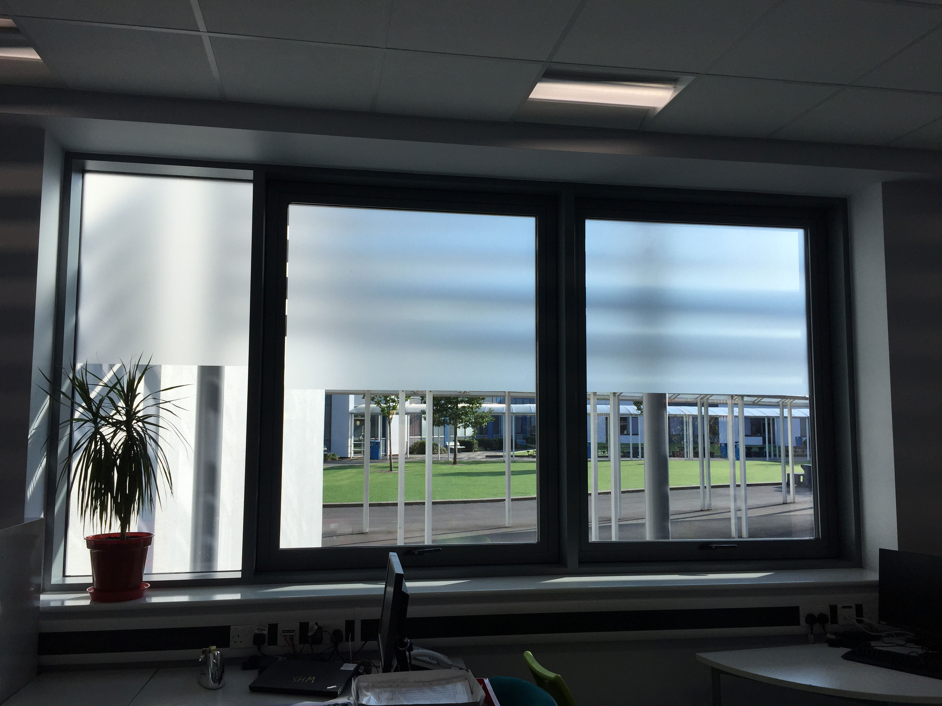 Frosted Panels For Glare Reduction The application of frosted window panels for this project was to reduce the amount of glare from the sun on computer screens in a sixth form common room/centre. School SignsFrosted glass and manifestations Share this sign agg_frosted
