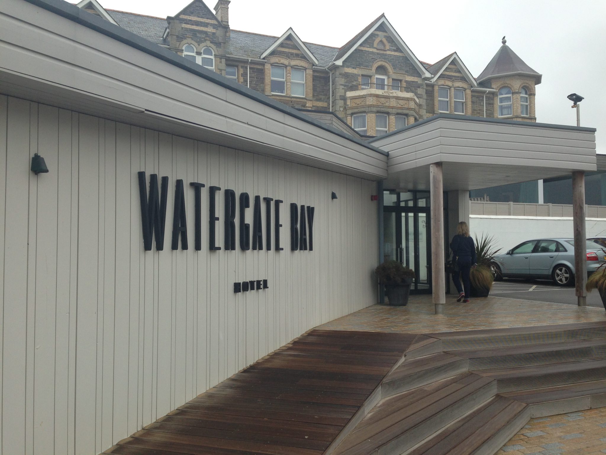 Thin powder coated metal letters, painted black and positioned on timber entrance wall to the hotel to create a striking first impression.