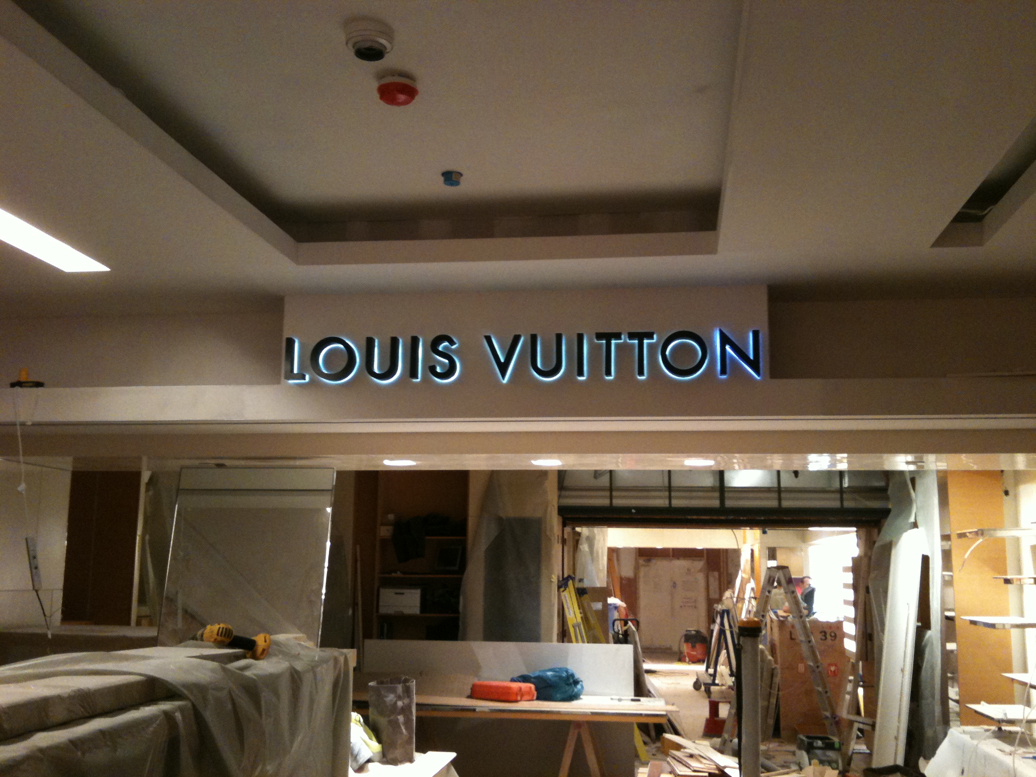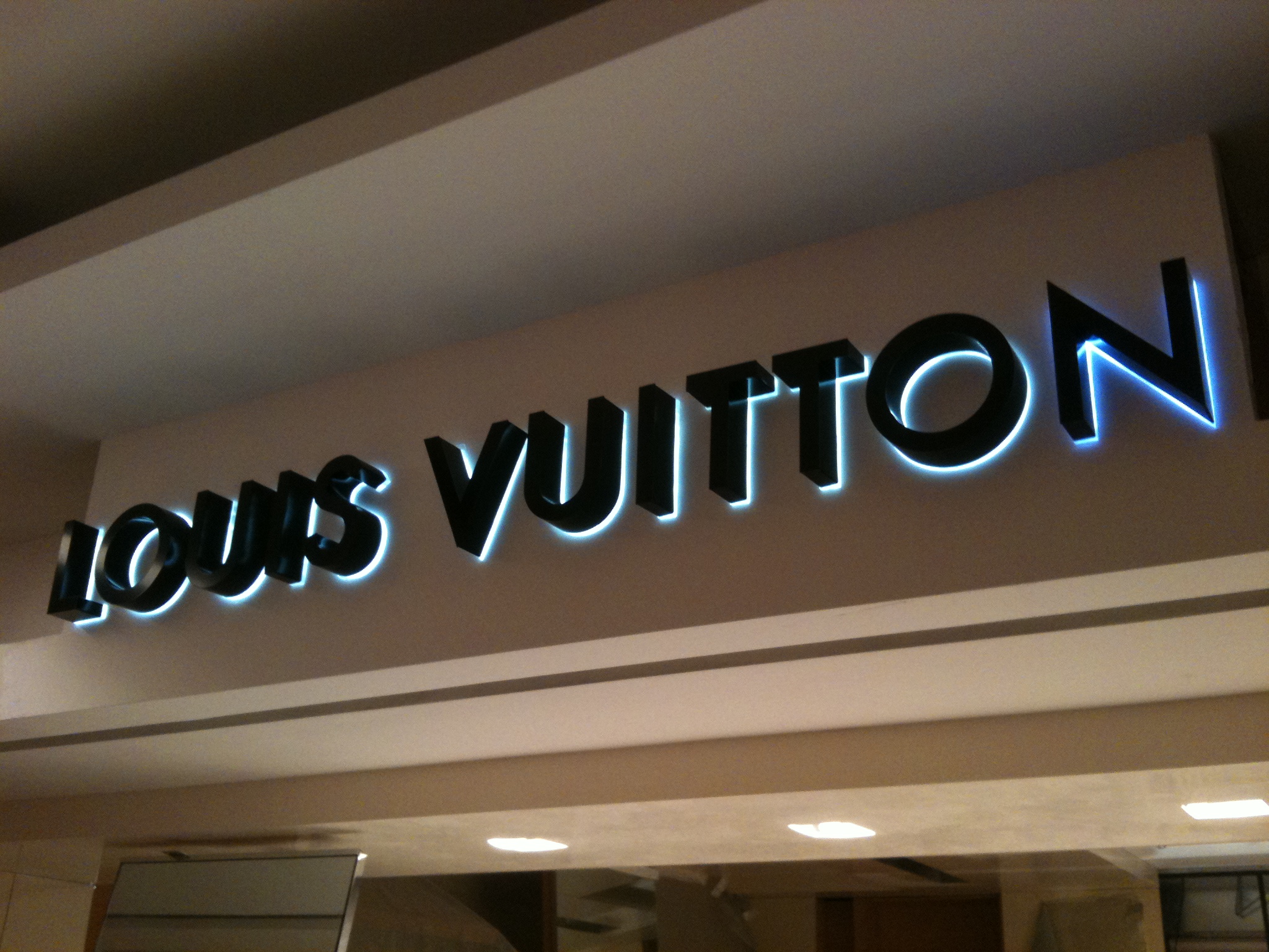 Louis Vuitton Built Up Illuminated Letters Back lit built up letters sign for Louis Vuitton for luxury concession shop in Harvey Nichols London. Shop SignsIlluminated LED and neon signs3D Share this sign